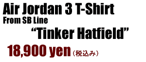 超コレクティブなアイテムの緊急入荷です!ナイキのSBラインから突如登場した、天才スニーカーデザイナーのティンカーハットフィールド氏(※備考1)のジョーダン3の設計図がプリントされたスウェード(風)Tシャツです!限定150着!? と言われる大変貴重な1枚です。